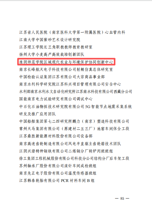 区域现代农业与环境保护协同创新中心于2014年3月立项建设,2022年正式获批教育部省部共建协同创新中心,2023年获全省协同创新工作先进集体,连续三次在全省绩效评价中获得“A”等次。中心聚焦国家重大战略,着力解决环洪泽湖农业面源污染防控技术难题,产出了一批“含绿量”高的科技成果,正逐渐成为我国同类湖泊生态区的发展示范,优秀事迹被《中国教育报》等主流媒体多次宣传报道。